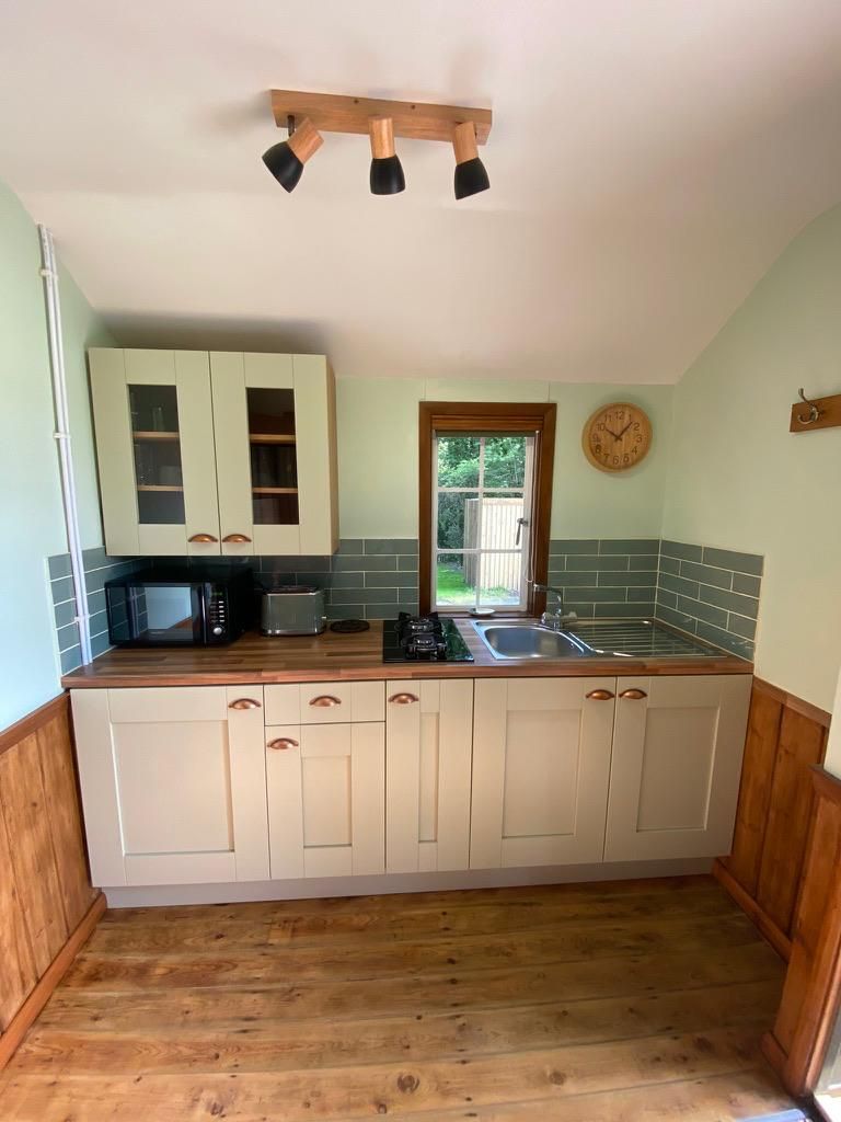 Cherry Lodge offers you a luxurious off-grid, eco-friendly, cosy self-contained retreat. A well-equipped kitchen to prepare easy to cook feasts for those who want to eat well without spending too much time in the kitchen! A beautiful double bed with a warm duvet, plump pillows, cushions and throws. The perfect place to rest, sleep or watch the wildlife through the French doors. A dining area, with table and chairs.