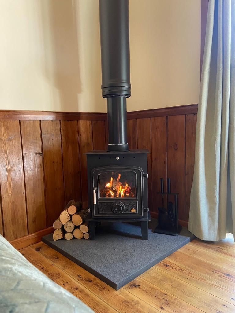 Full sized bathroom with a hot shower, flushing toilet, wash basin, eco-toiletries and fluffy towels. For those colder winter evenings, the real flame log burner will bring you warmth, comfort and a sense of wellbeing to a well-earned break in the woodland.